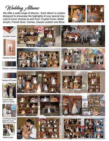 • 10 x 10 Wedding album with 20 sides. • Engagement session with free digital downloads, plus engagement images on a USB in a custom box • 3 photographers • 3 Hours Photo Booth with 4x6 prints for guests. Open Air style, with backdrop. Lots of Props. • Photos on a USB w/copyright release with professionally edited color correcting and cropping. Comes in a custom box. • 20x30 gallery wrap OR 16x20 metal • Two 8x10's four 5x7's • Online hosting & free digital downloads